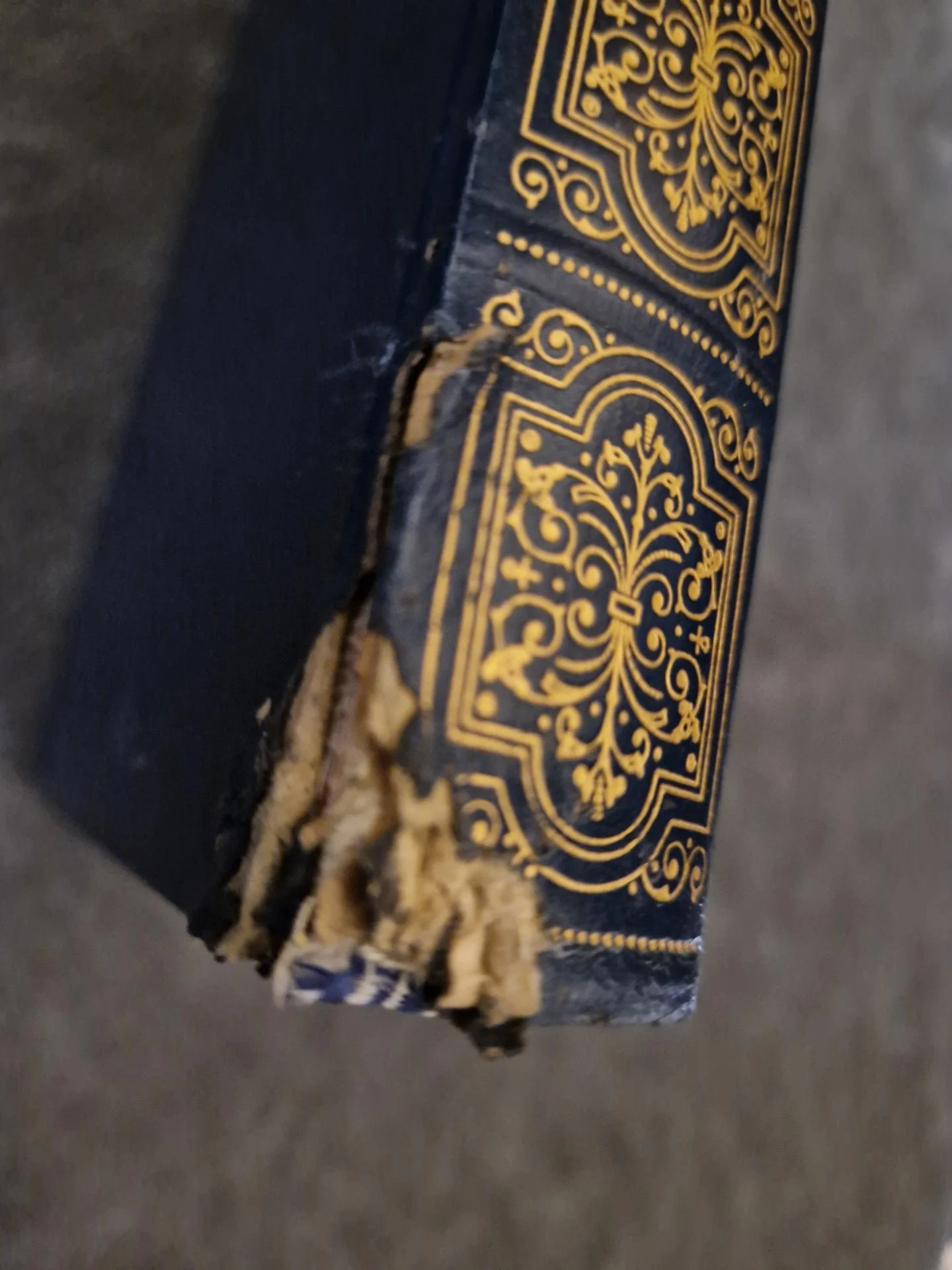 Reliure simili cuir bleue marine décorée de motifs dorés en bon état (un volume dont le dos est abîmé: Jocaste et le chat maigre - Le crime de Sylvestre Bonnard)